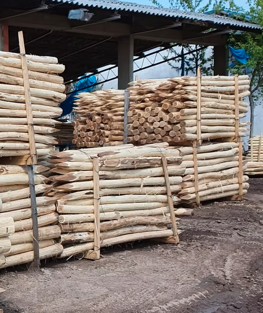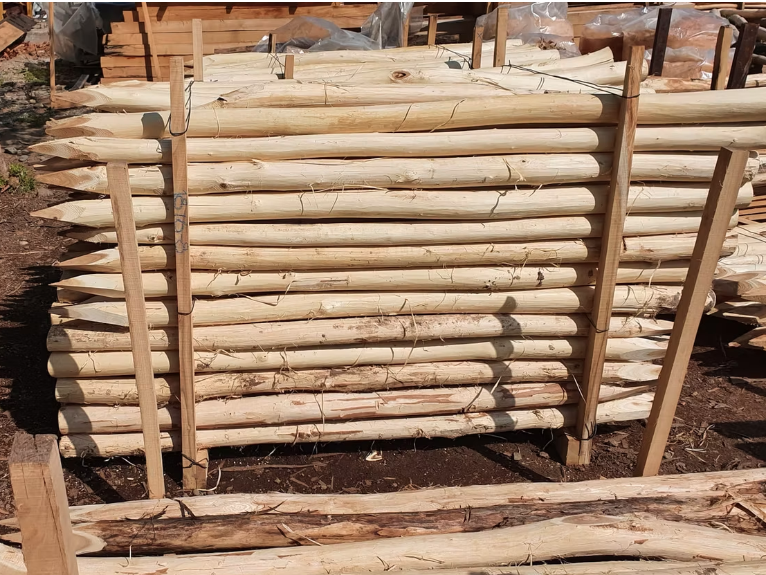 Clean, debarked and pointed round poles. Classic acacia quality for fencing, playgrounds, vineyard stakes, and agricultural use.